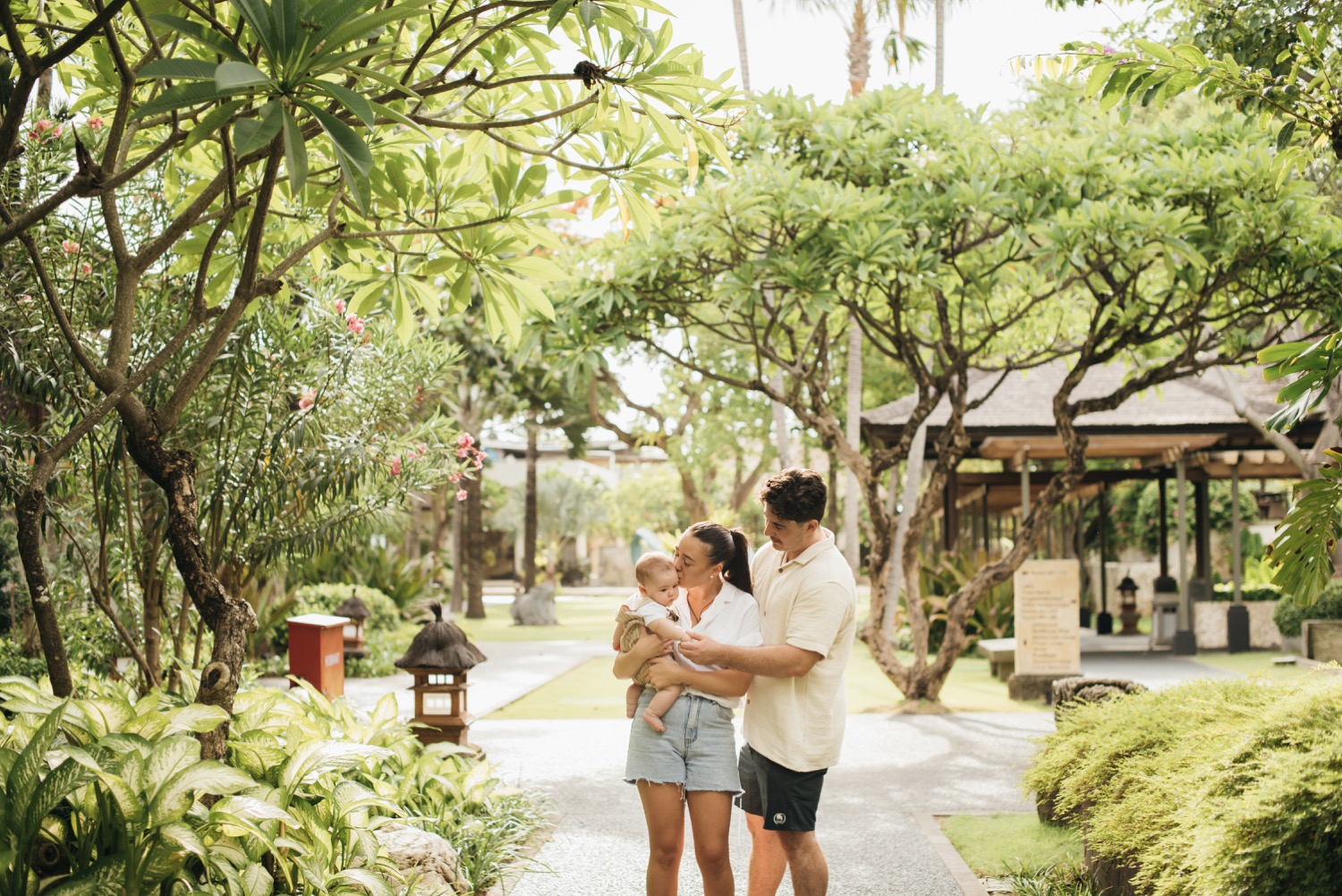 Choosing a location for a family photo shoot can be a bit tricky, especially when traveling with a toddler. You might want to consider the distance and access to the location from the hotel/villa where you are staying in Bali. Therefore, we often suggest to our clients to have their session inside the hotel area, especially when there’s a huge garden and lots of greenery. It can save a lot of trouble.