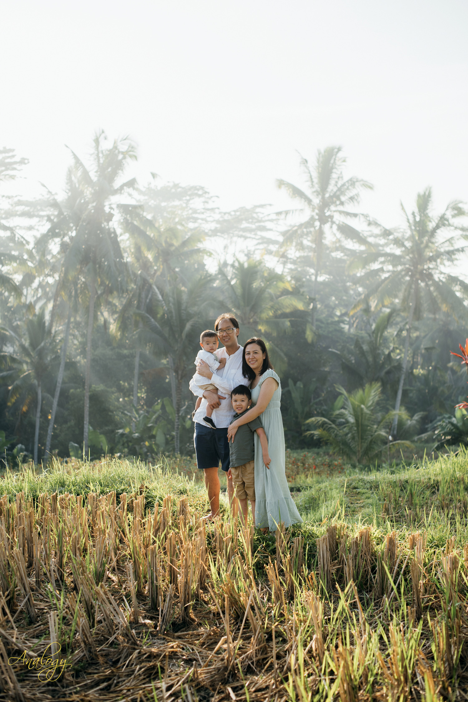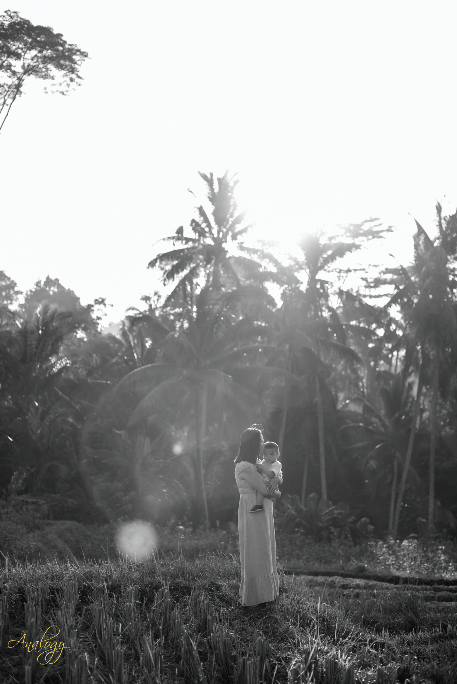 As the first light of dawn breaks over Bali’s horizon, a serene spectacle unfolds behind the silhouette of swaying coconut trees. The sun rises gracefully, casting a warm glow upon the emerald expanse of rice paddies that stretch across the landscape.