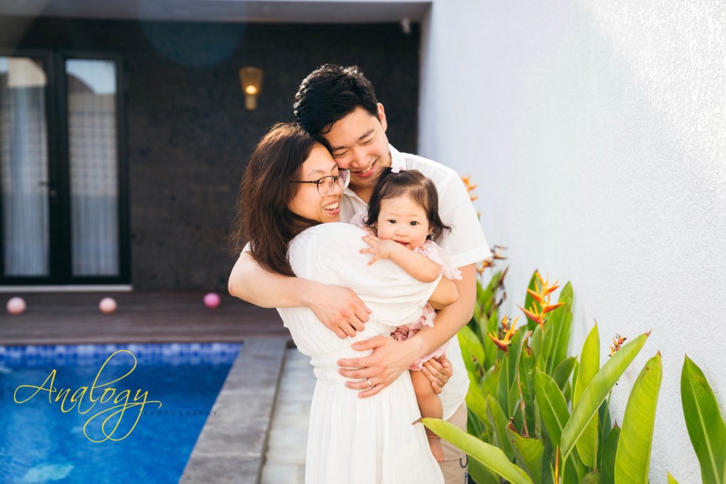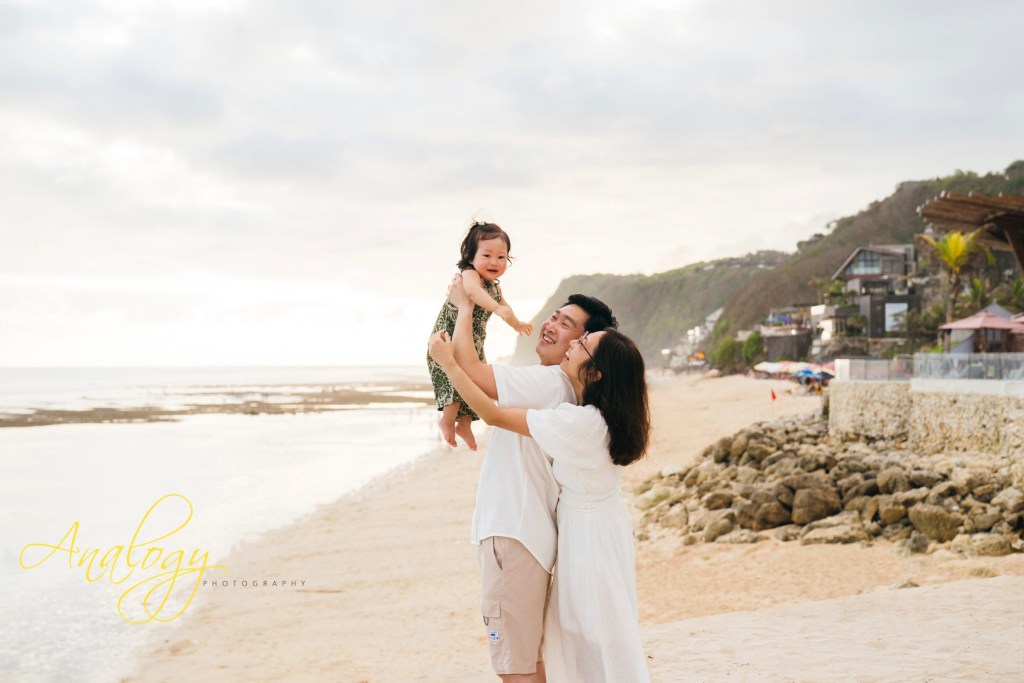 The little girl’s first birthday was celebrated with a cozy gathering at a villa where her family was staying during their holiday in Bali. The celebration was attended by her grandparents, aunt, uncle, and cousins. The atmosphere was warm and joyful, with soft laughter and gentle music filling the air as she curiously explored her cake. As the day drew to a close, the family headed to the nearby beach for a sunset photoshoot. With the golden light casting a magical glow, they captured precious moments by the water—marking a beautiful end to her very first birthday celebration.