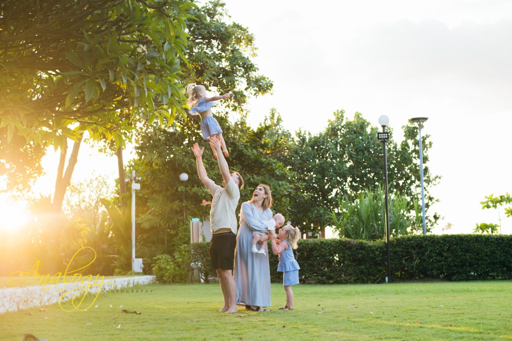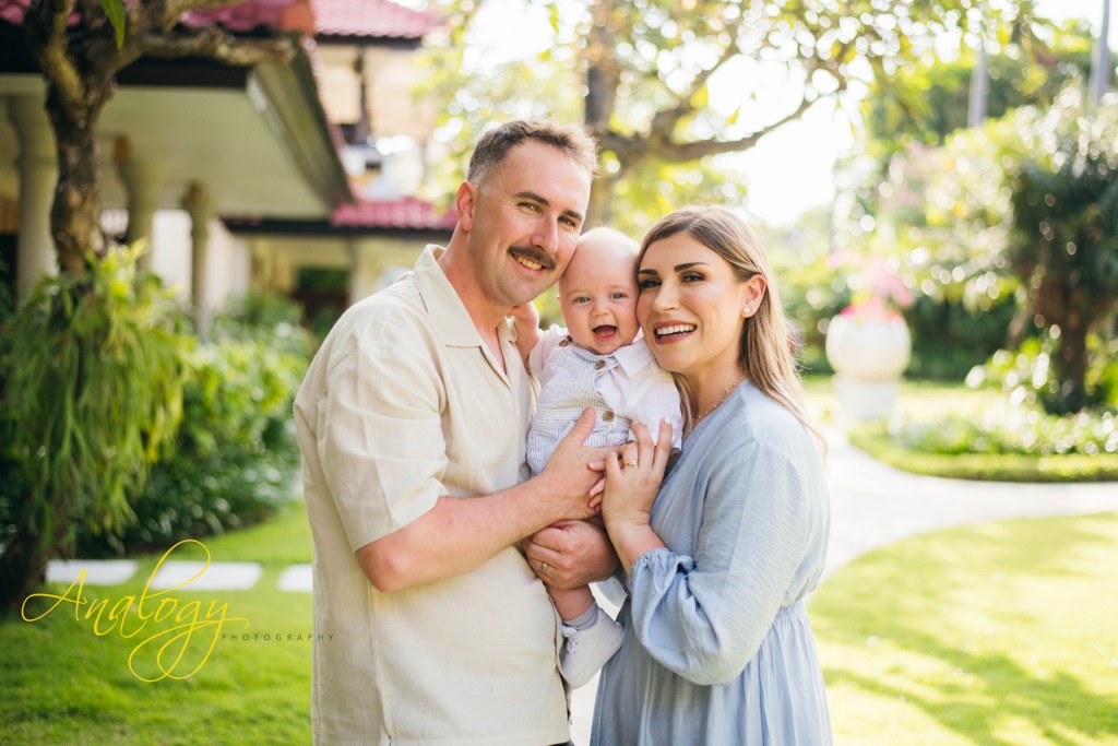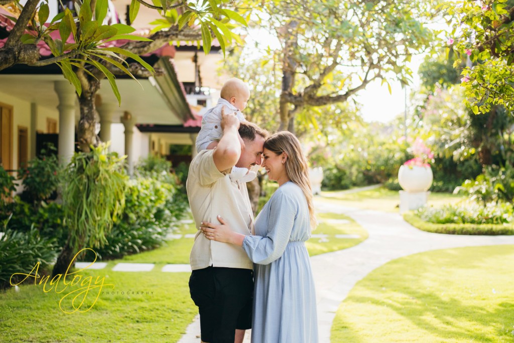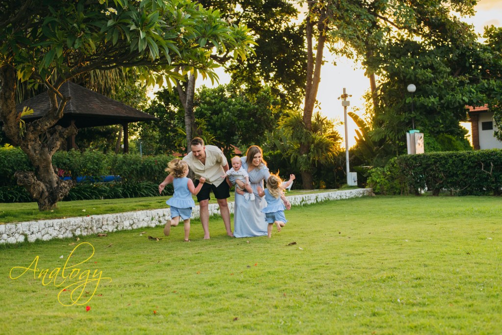 A beautiful family photoshoot at Baruna Resort Bali perfectly captured the warm, unbreakable bond of a young and joyful family. The proud parents stood side by side, their smiles filled with love and gratitude, as they embraced their adorable 5-month-old baby boy and their two lively little girls, whose giggles filled the air with happiness. The golden Bali sunset cast a soft, magical glow across the beach, painting the sky in delicate shades of orange, pink, and lavender. As the waves gently rolled onto the shore and the sea breeze danced through their hair, the family shared moments of laughter, playful splashes in the water, and tender hugs that spoke louder than words. The warm, glowing light of the evening created a dreamy backdrop, turning every frame into a timeless memory — a portrait of pure love, connection, and the simple joy of being together in paradise.