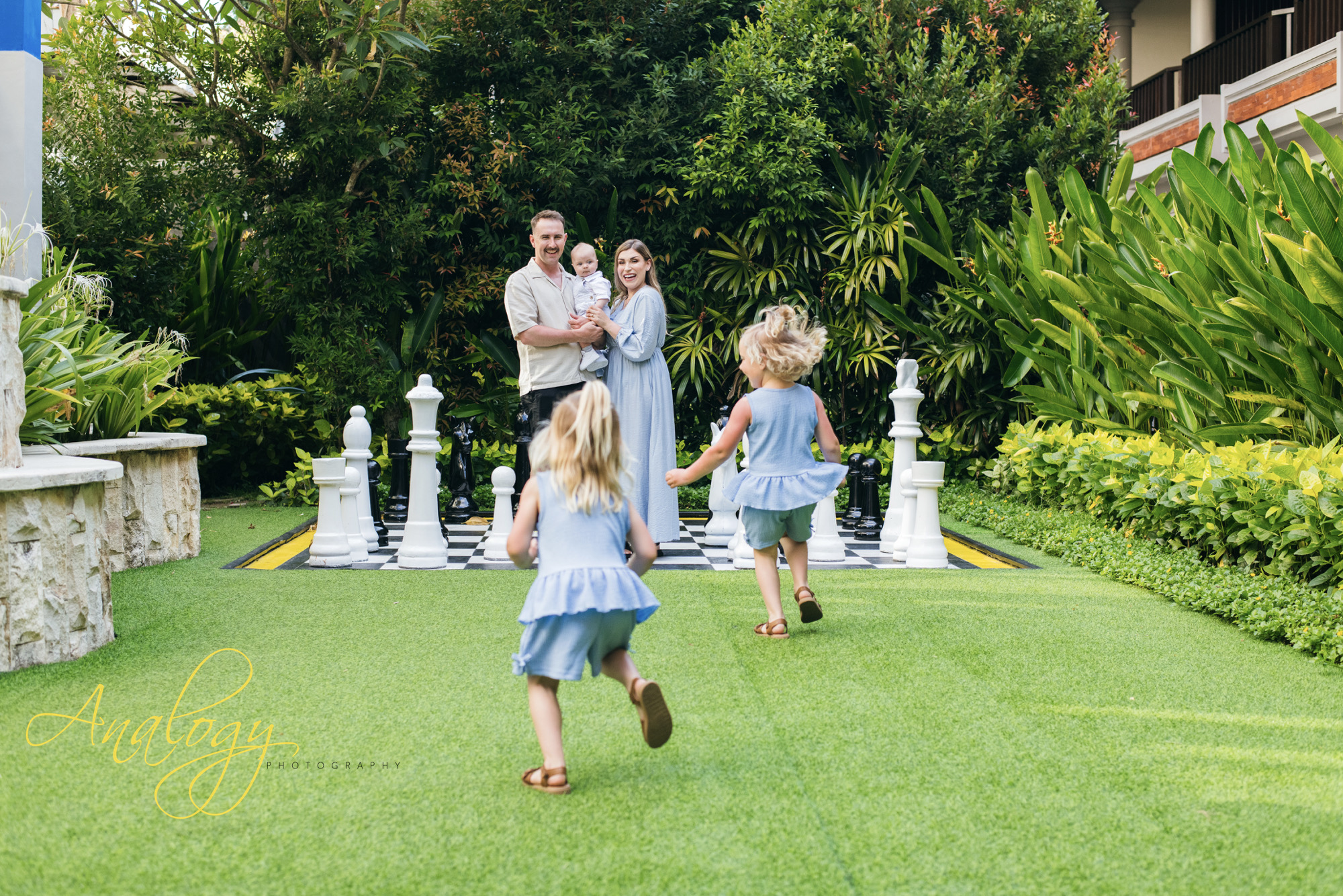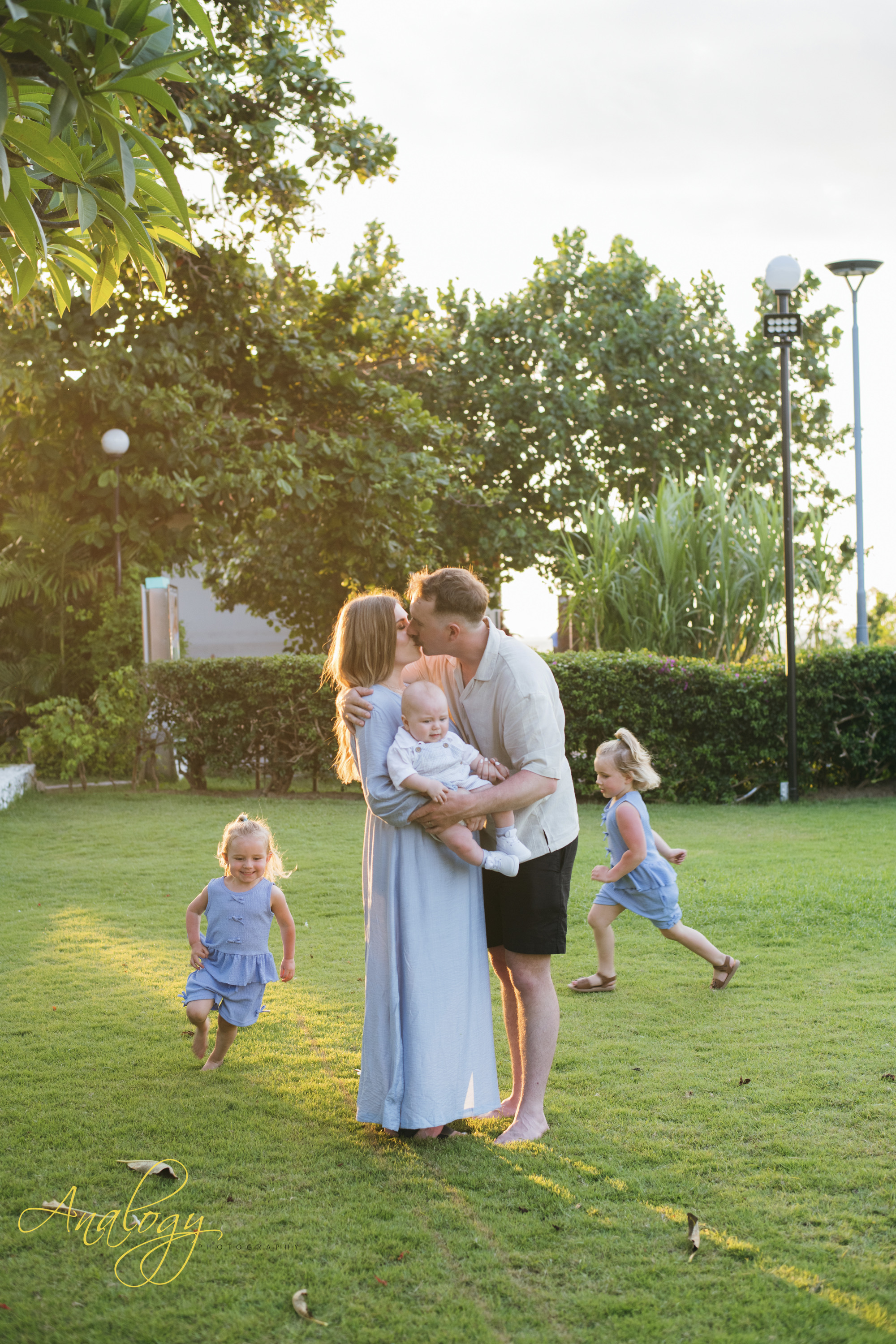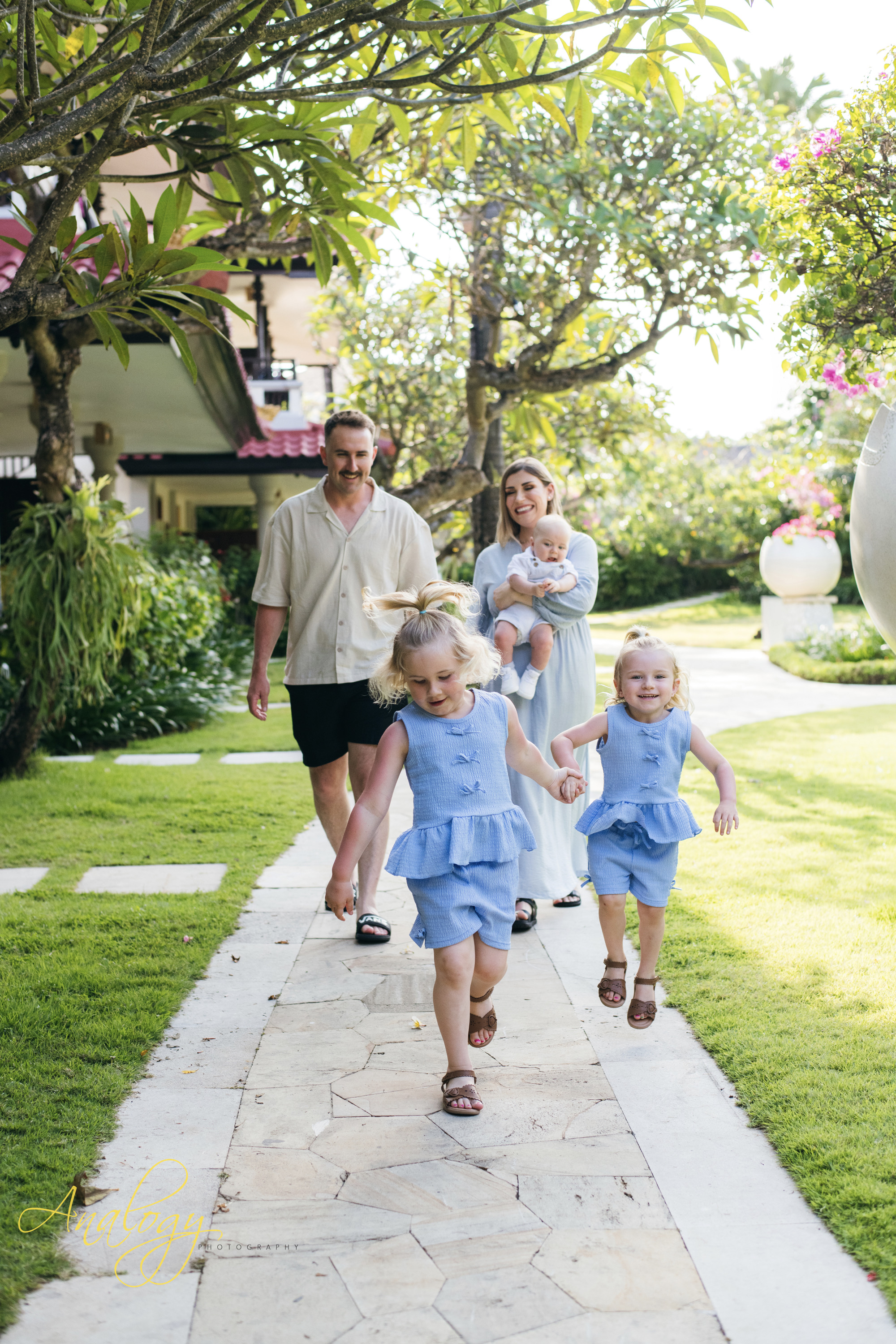 A beautiful family photoshoot at Baruna Resort Bali perfectly captured the warm, unbreakable bond of a young and joyful family. The proud parents stood side by side, their smiles filled with love and gratitude, as they embraced their adorable 5-month-old baby boy and their two lively little girls, whose giggles filled the air with happiness. The golden Bali sunset cast a soft, magical glow across the beach, painting the sky in delicate shades of orange, pink, and lavender. As the waves gently rolled onto the shore and the sea breeze danced through their hair, the family shared moments of laughter, playful splashes in the water, and tender hugs that spoke louder than words. The warm, glowing light of the evening created a dreamy backdrop, turning every frame into a timeless memory — a portrait of pure love, connection, and the simple joy of being together in paradise.