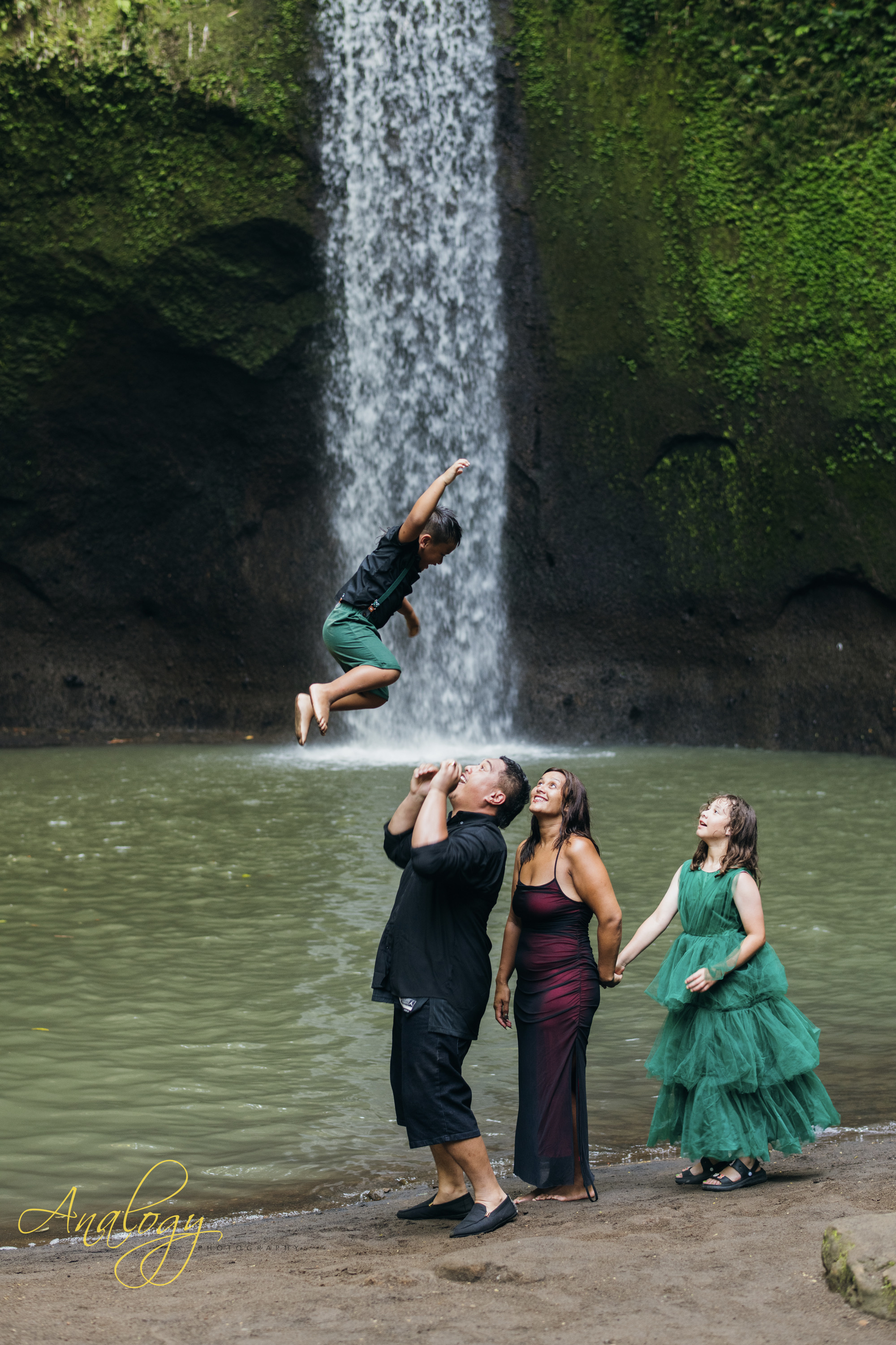 At sunrise, Tibumana Waterfall transforms into a breathtaking haven for family photography, offering a blend of serenity and natural beauty that’s hard to match. As the first rays of light filter through the dense jungle canopy, they cast a soft, golden shimmer across the cascading water and the surrounding emerald cliffs. The gentle morning mist adds a dreamy haze, creating an atmosphere that feels both intimate and otherworldly. In this peaceful setting—free from the usual crowds—families can relax, explore, and simply enjoy being together. Every laugh, embrace, and quiet moment becomes even more meaningful against the soothing sound of the falls. The resulting photos feel timeless, capturing not only beautiful scenery but the genuine warmth, connection, and joy shared in those early hours of the day.