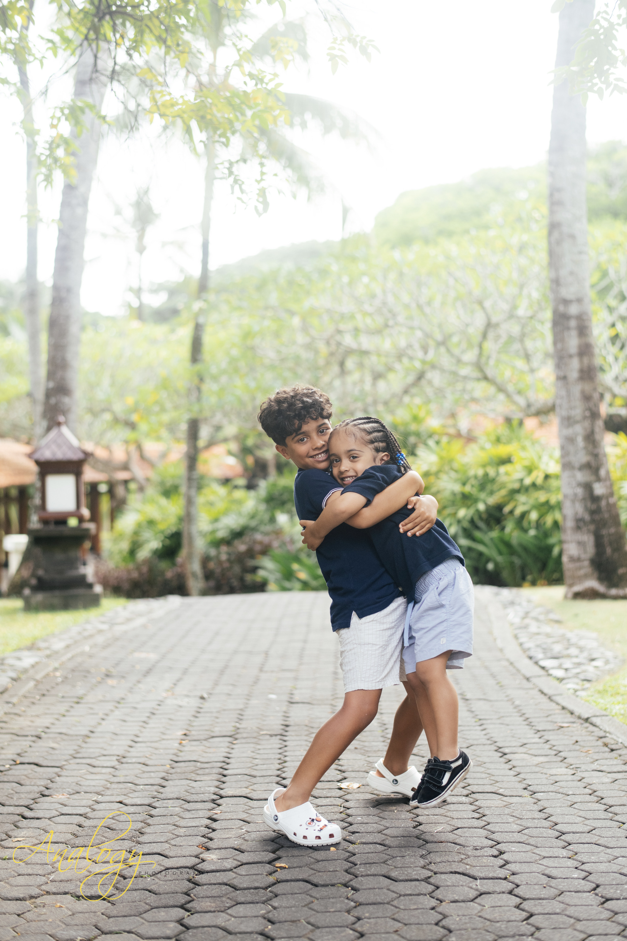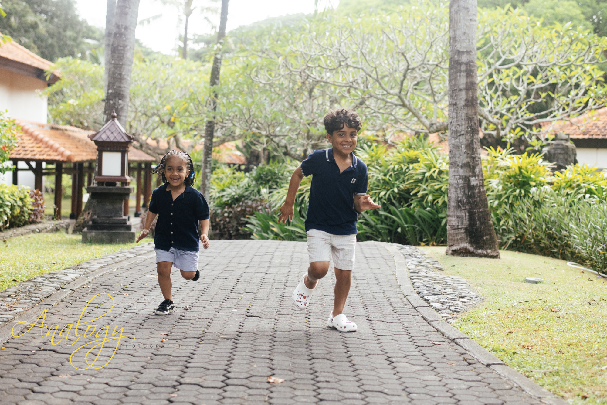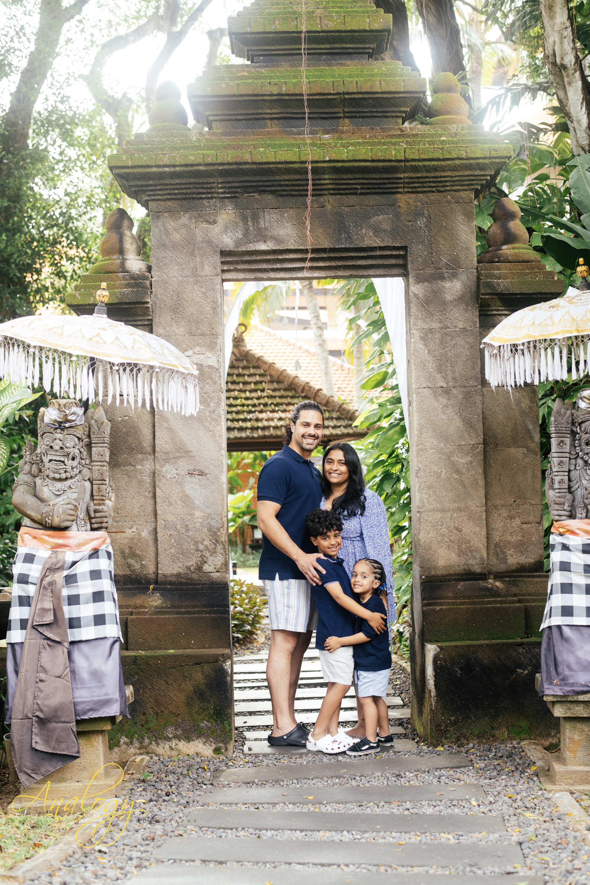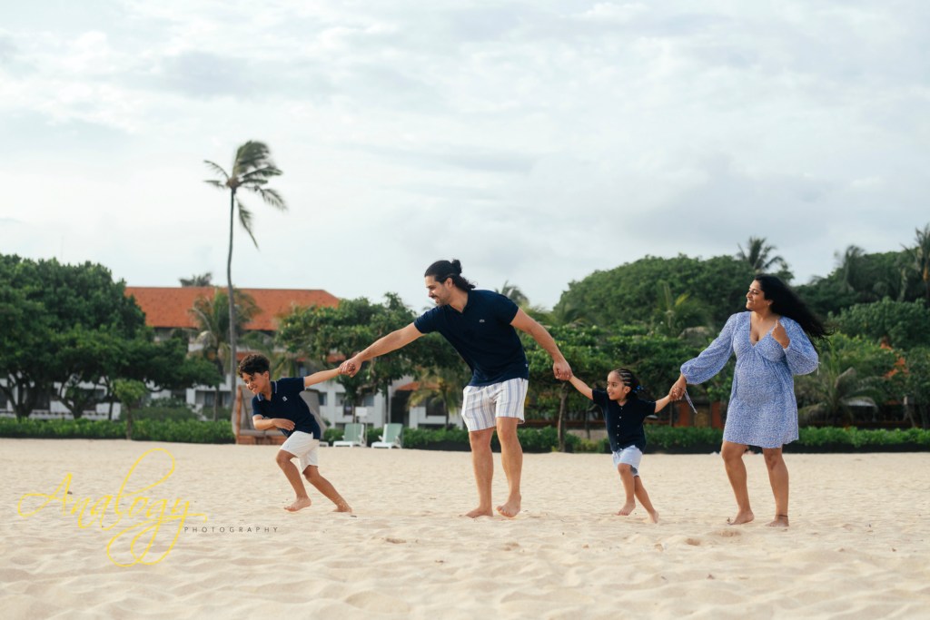 An afternoon family photoshoot at Grand Hyatt Nusa Dua on a cloudy day offers soft, diffused light, perfect for capturing natural smiles and candid moments amidst the resort’s lush grounds or along its serene beach, creating timeless memories without harsh shadows, even as the sun hides, making for a relaxed and intimate session filled with genuine connection and the beautiful backdrop of Bali’s tranquil scenery.