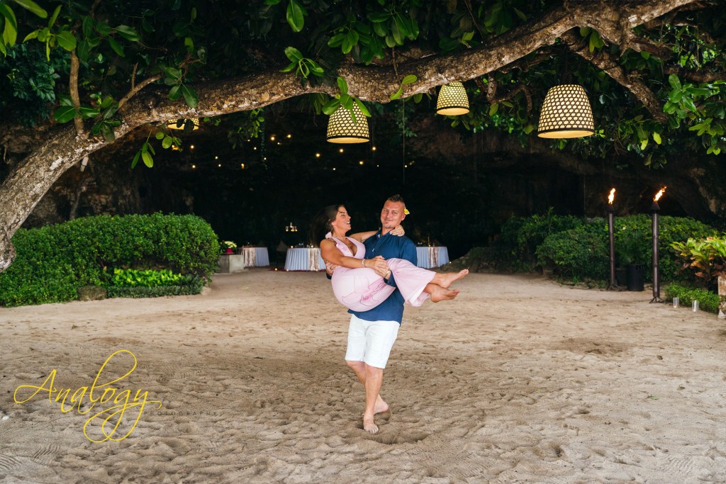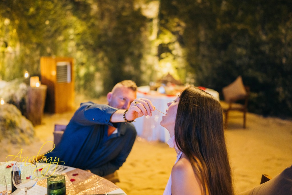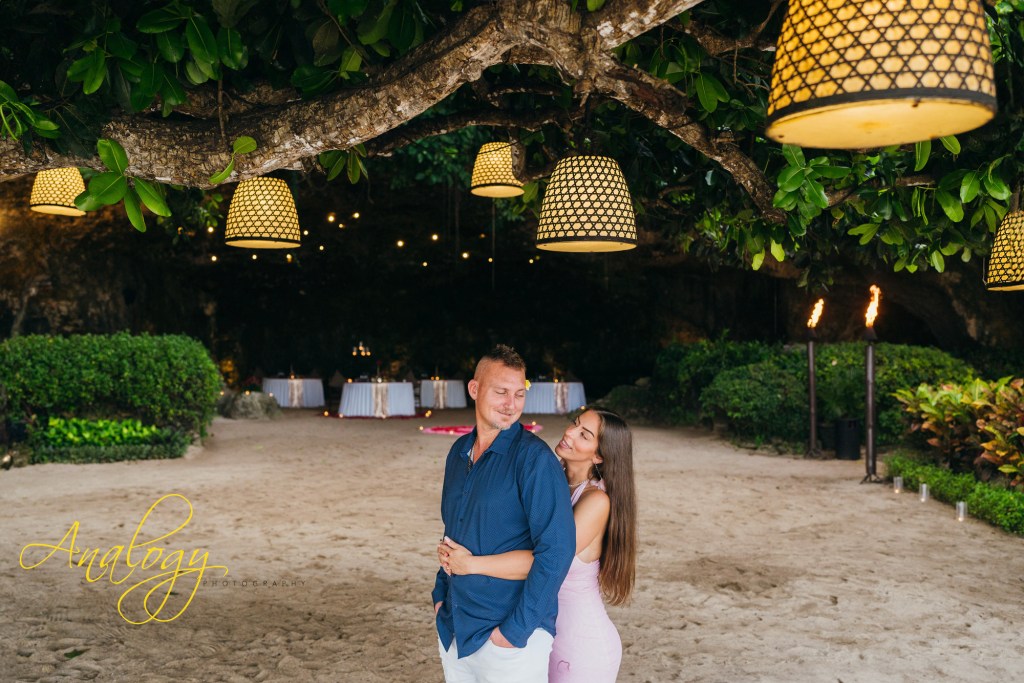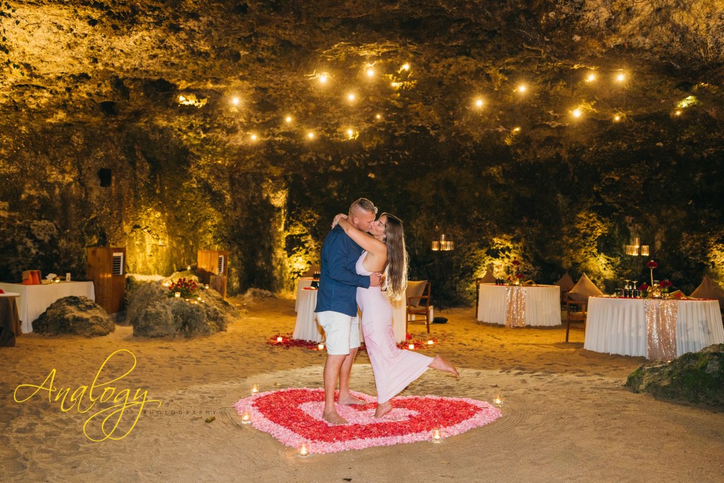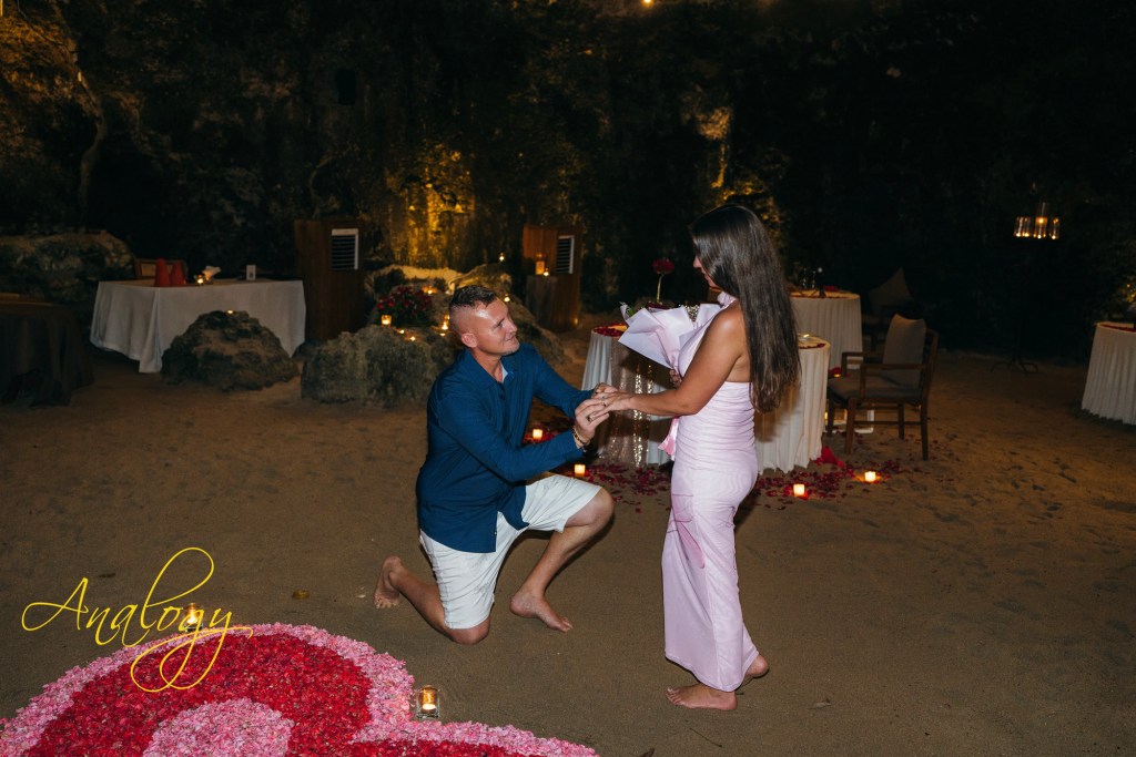 A surprise proposal during a romantic dinner at Samabe Cave Dining feels effortlessly magical. Hidden within the dramatic seaside cave, the evening unfolds with candlelight, ocean echoes, and a sense of total privacy. Just as the atmosphere reaches its most intimate, the surprise moment arrives—transforming a beautiful dinner into an unforgettable declaration of love, set against one of Bali’s most breathtaking backdrops.